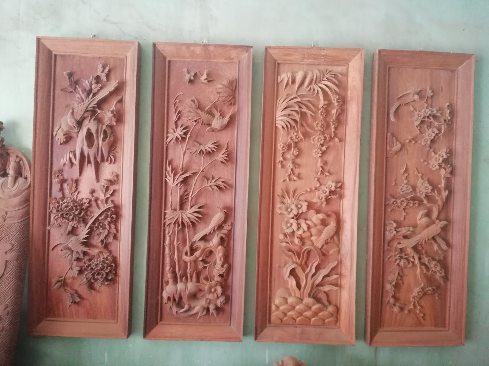 Tranh tứ quý gỗ hương ta.